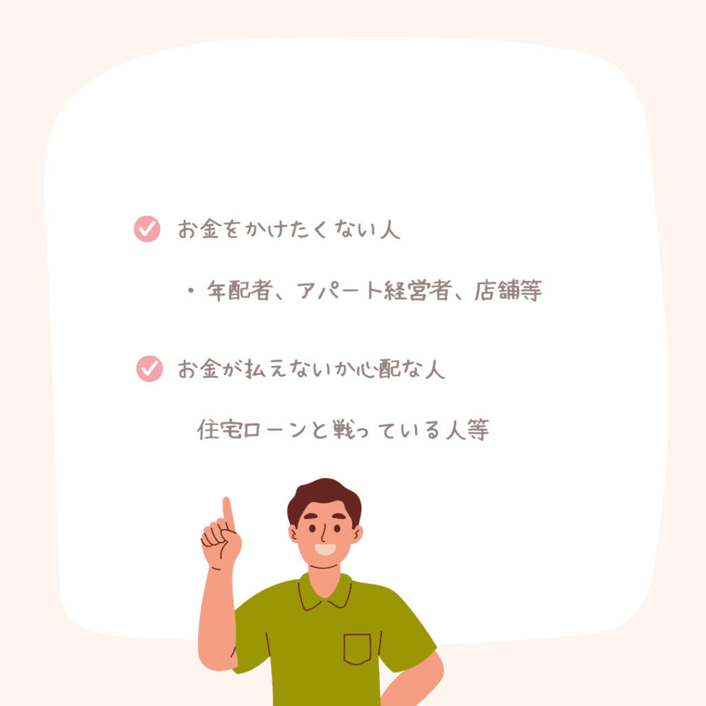 私たちは、必要な個所をタイムリーに補修、そして劣化した現場個所だけを見ないで「年齢」「家族構成」「将来」を考え、周りを考慮して「今何をすればいいか」を判断してメンテナンスすることが重要だと考えています。